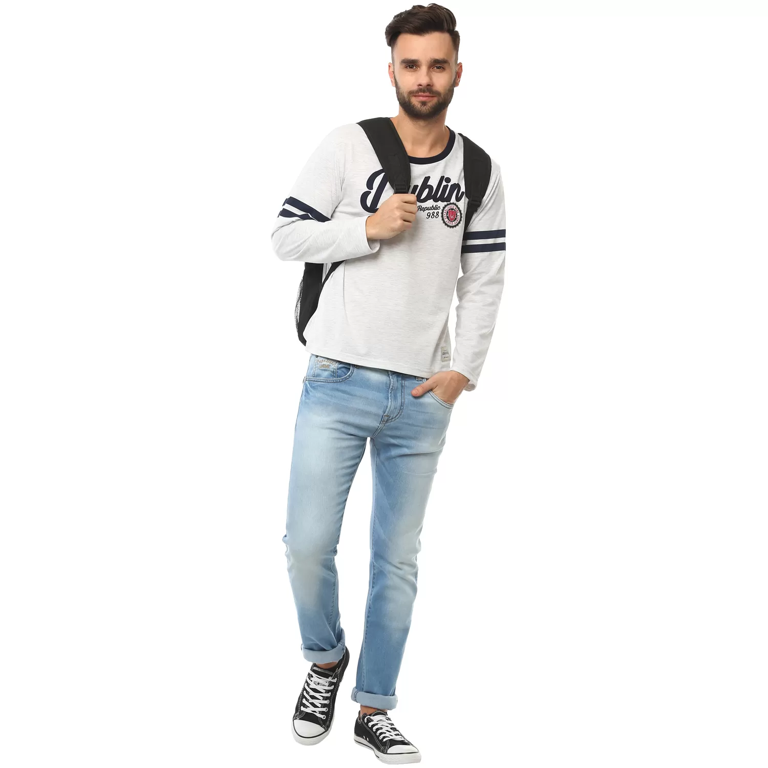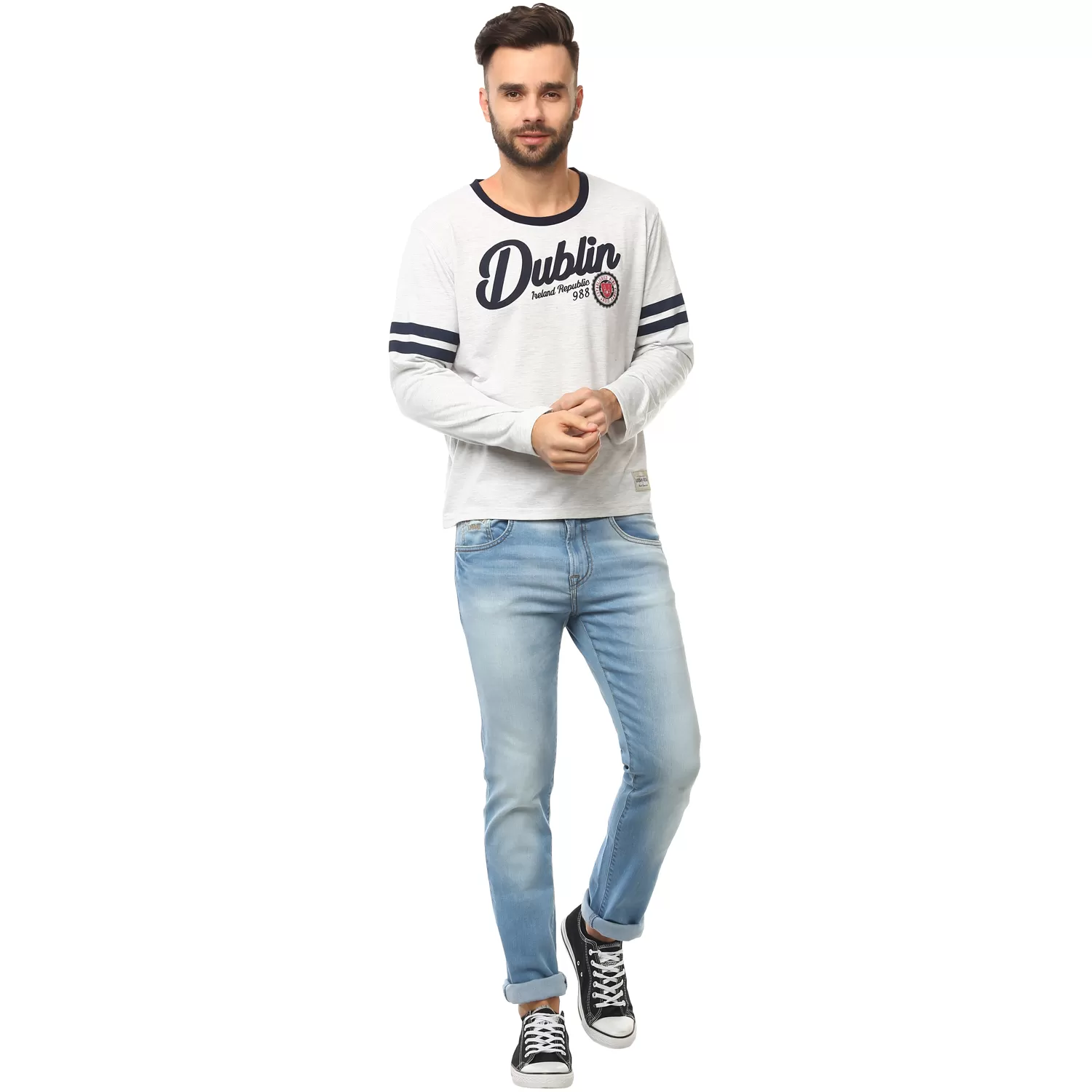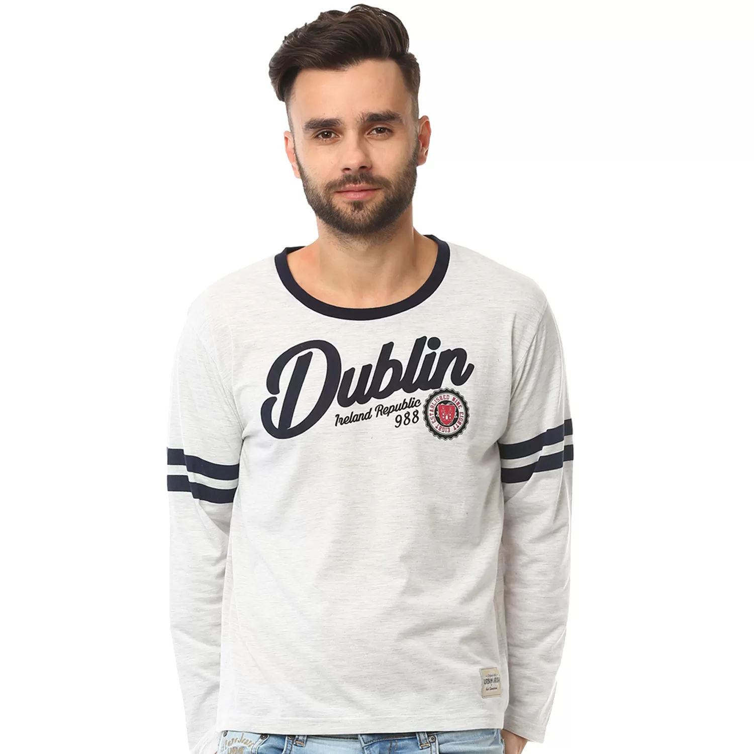 Dublin Stamp Stripes Long Sleeves Round Neck T-shirt