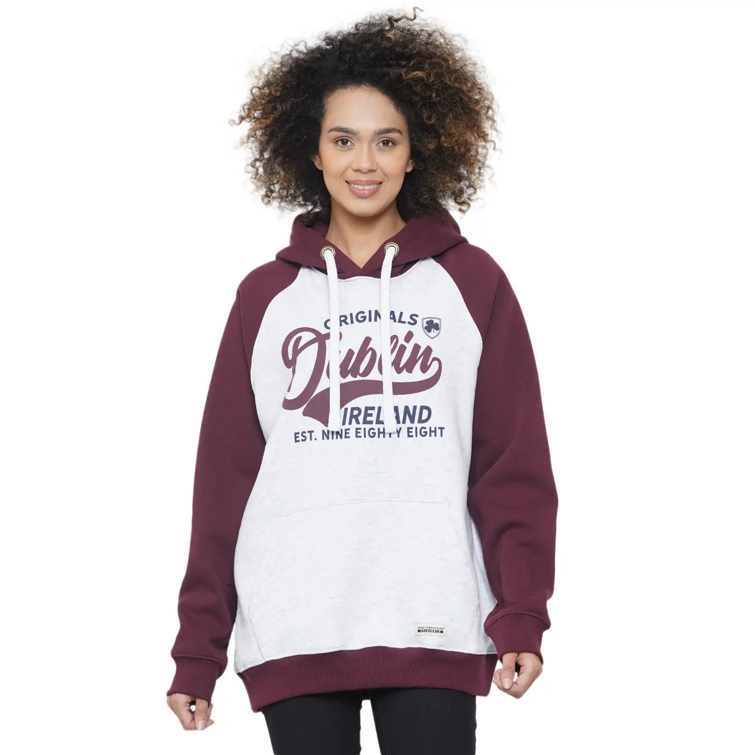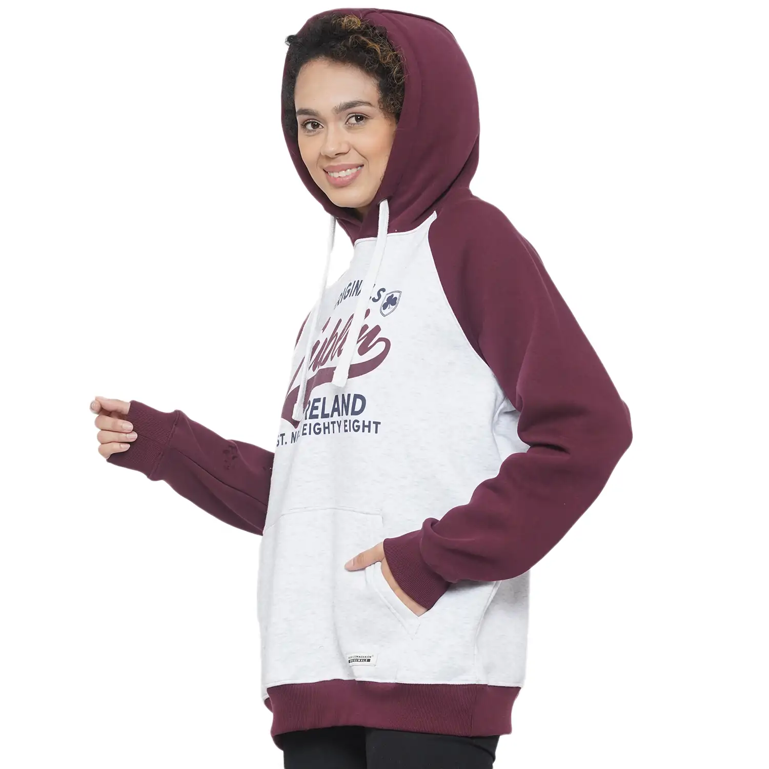 DUBLIN RAGLAN UNISEX HOOD BURGUNDY/ASH