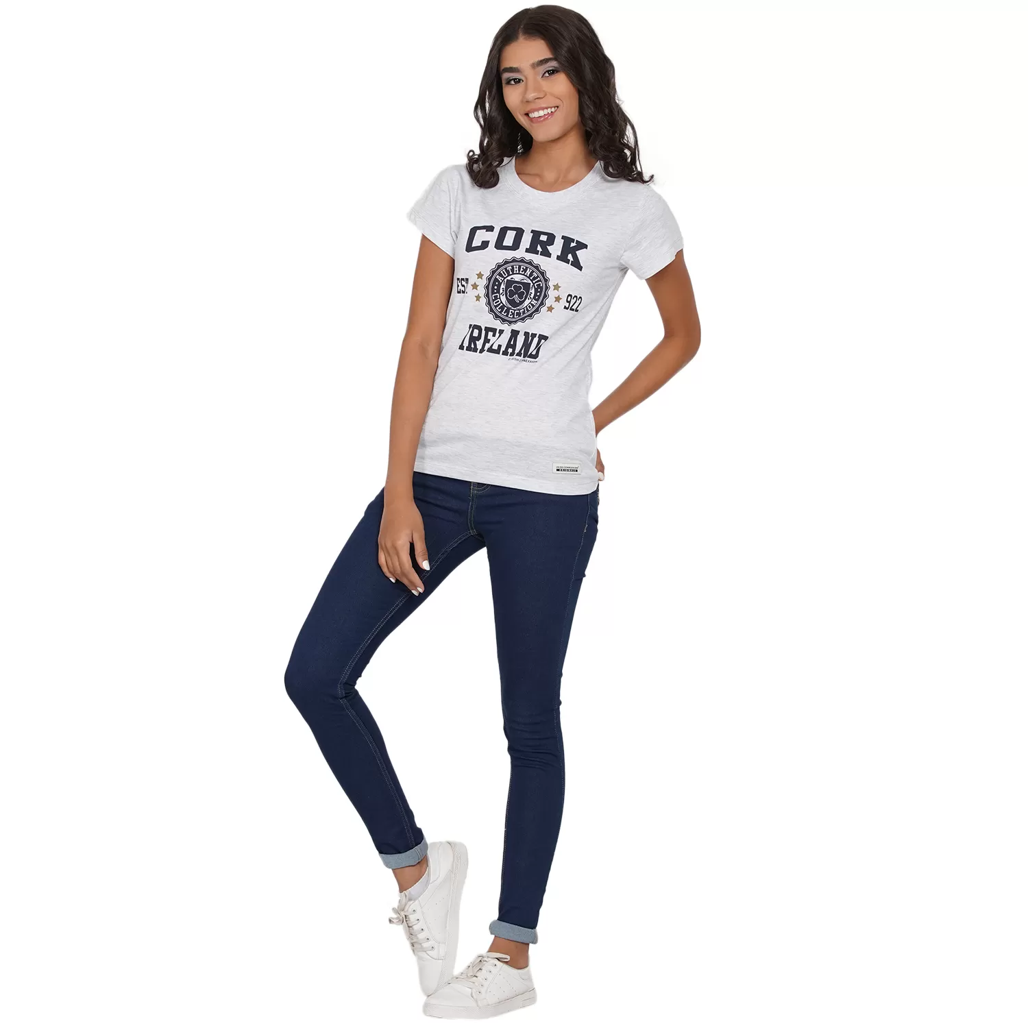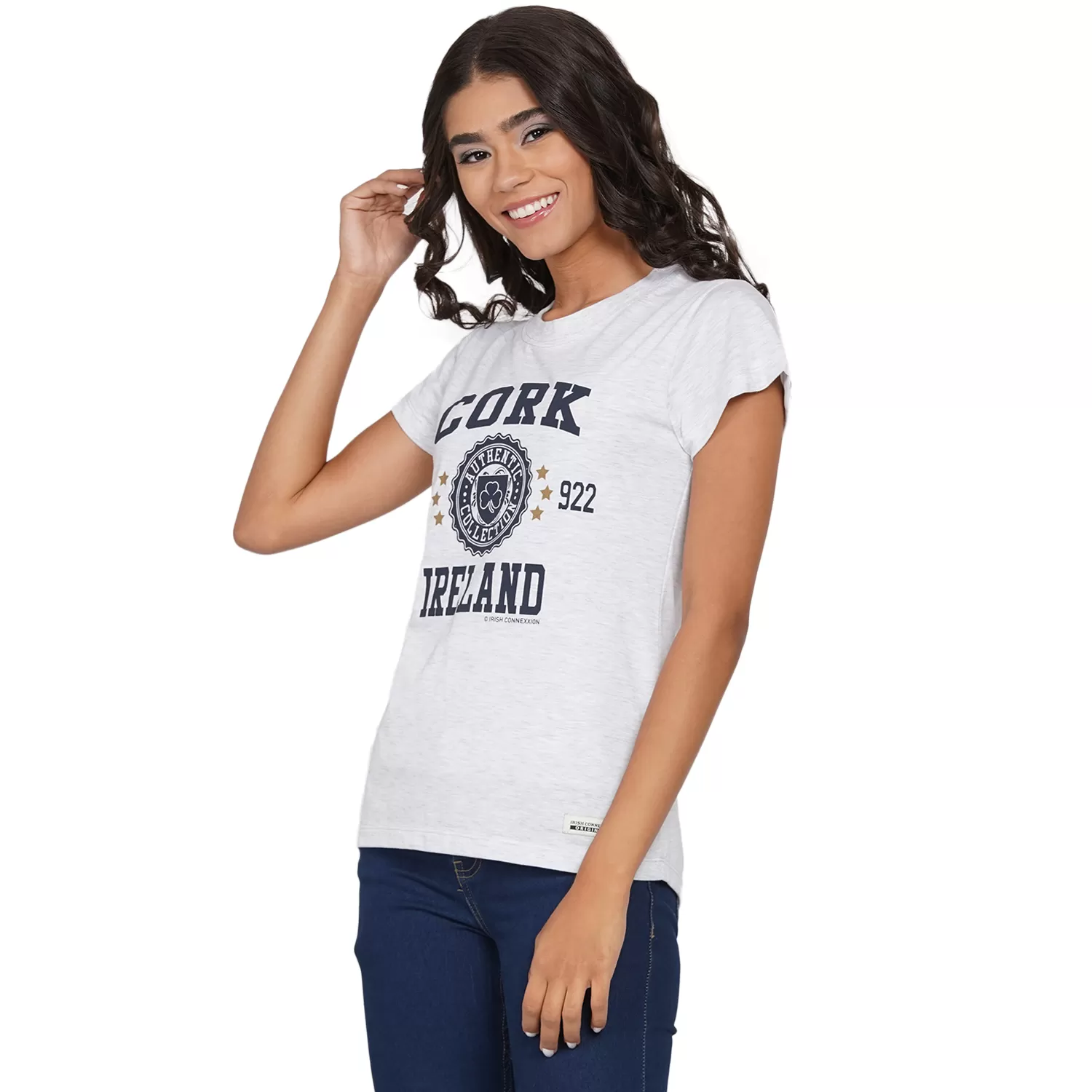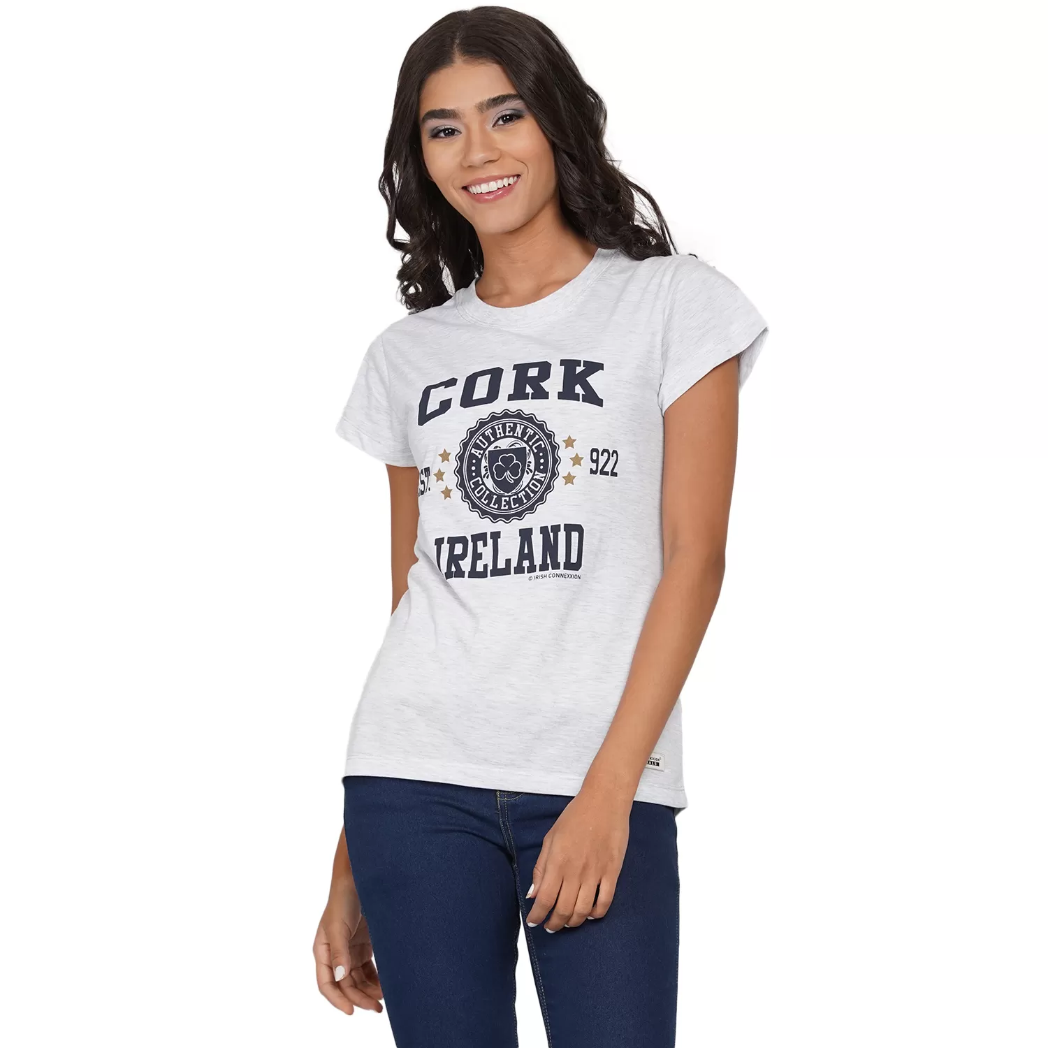 Cork Stamp Stars Lady T Shirt Ash Grey