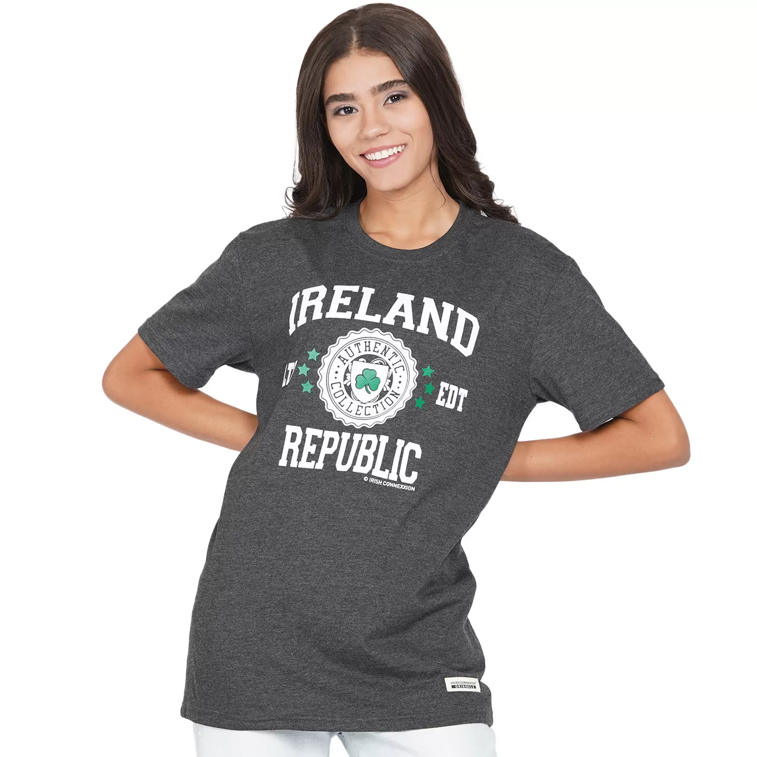 IRELAND STAMP STARS UNISEX T SHIRT BLACK MELANGE